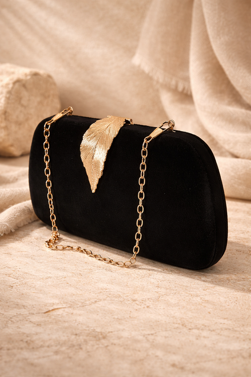 ZARÉLIA Kadife Yaprak Tokalı Akşam Çantası
